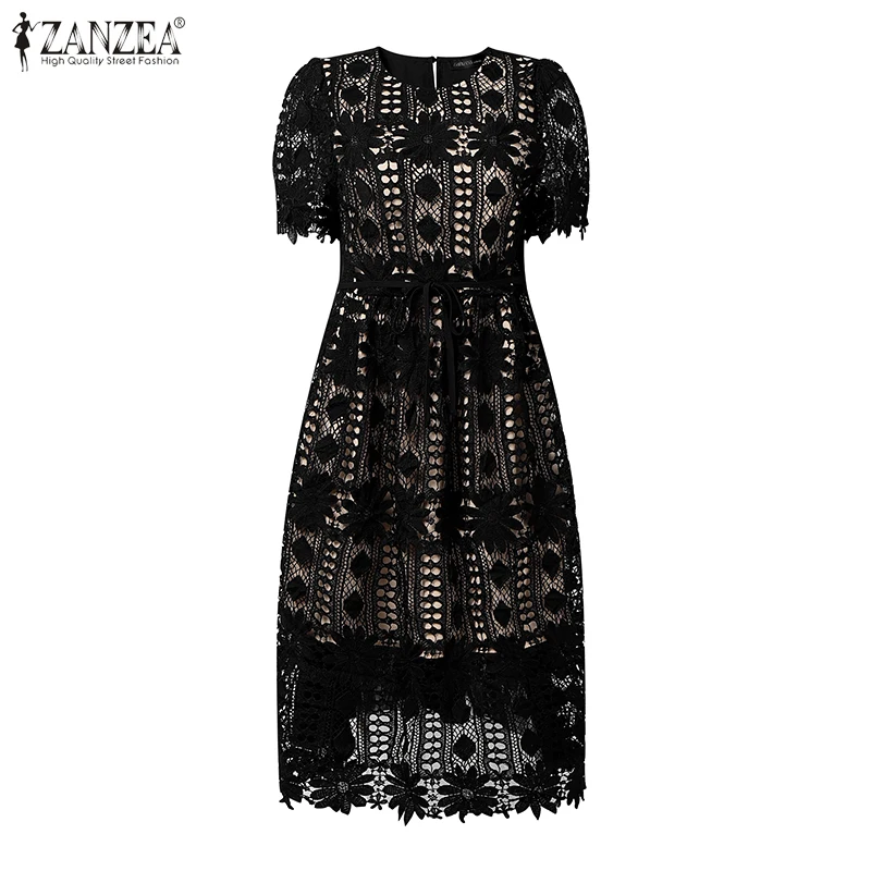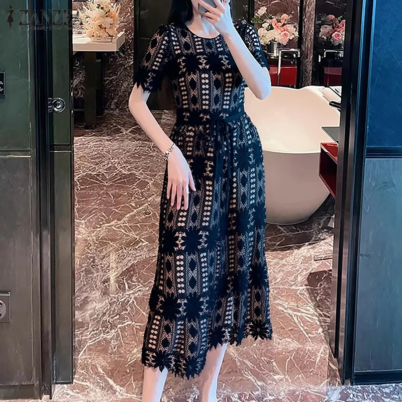 Crafted with delicate lace detailing, this dress offers a refined and feminine look while remaining comfortable for all-day wear. The high waist design enhances your natural shape, while the A-line skirt flows gracefully to create a flattering silhouette for all body types.