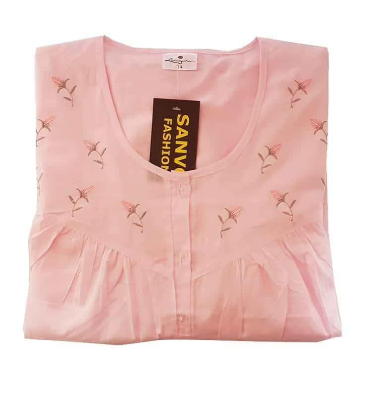 So comfortable with short sleeves and buttoned front Beautiful embroidery on the front yoke.