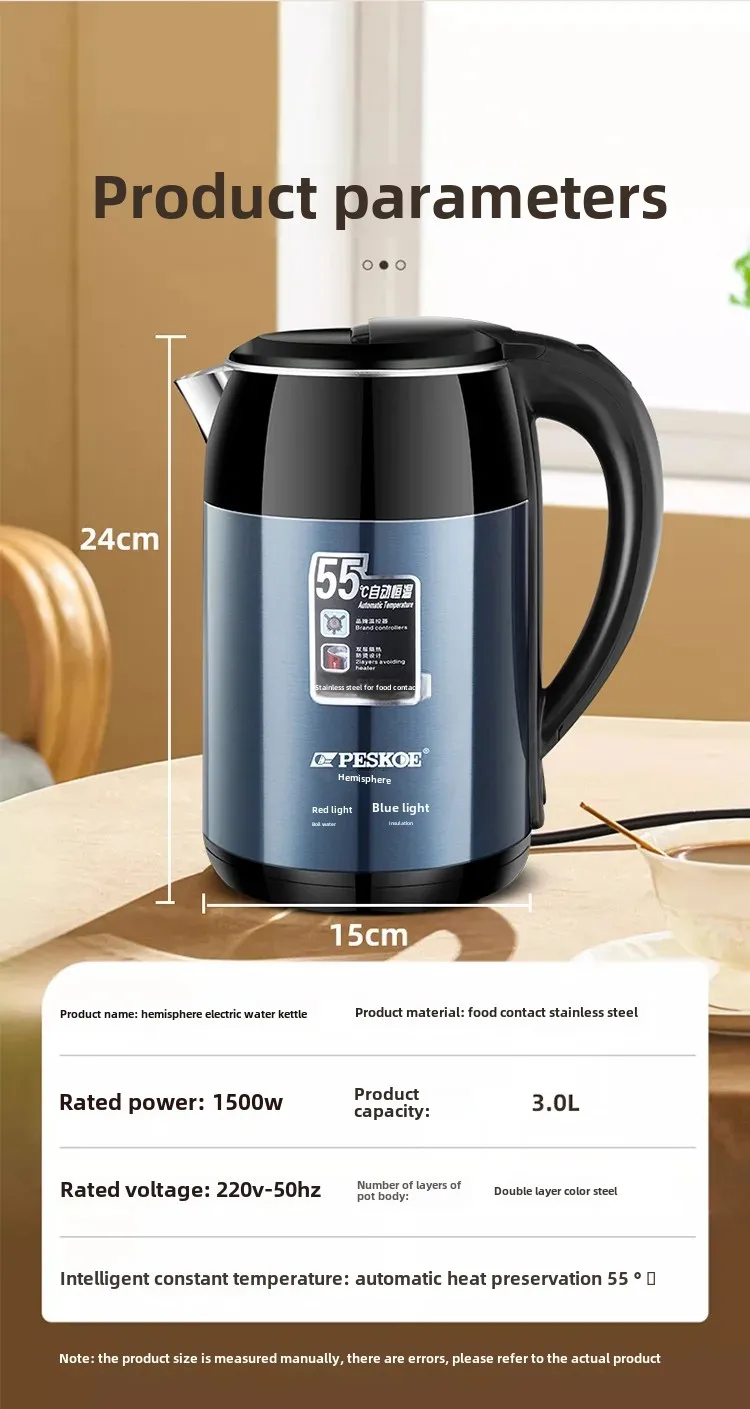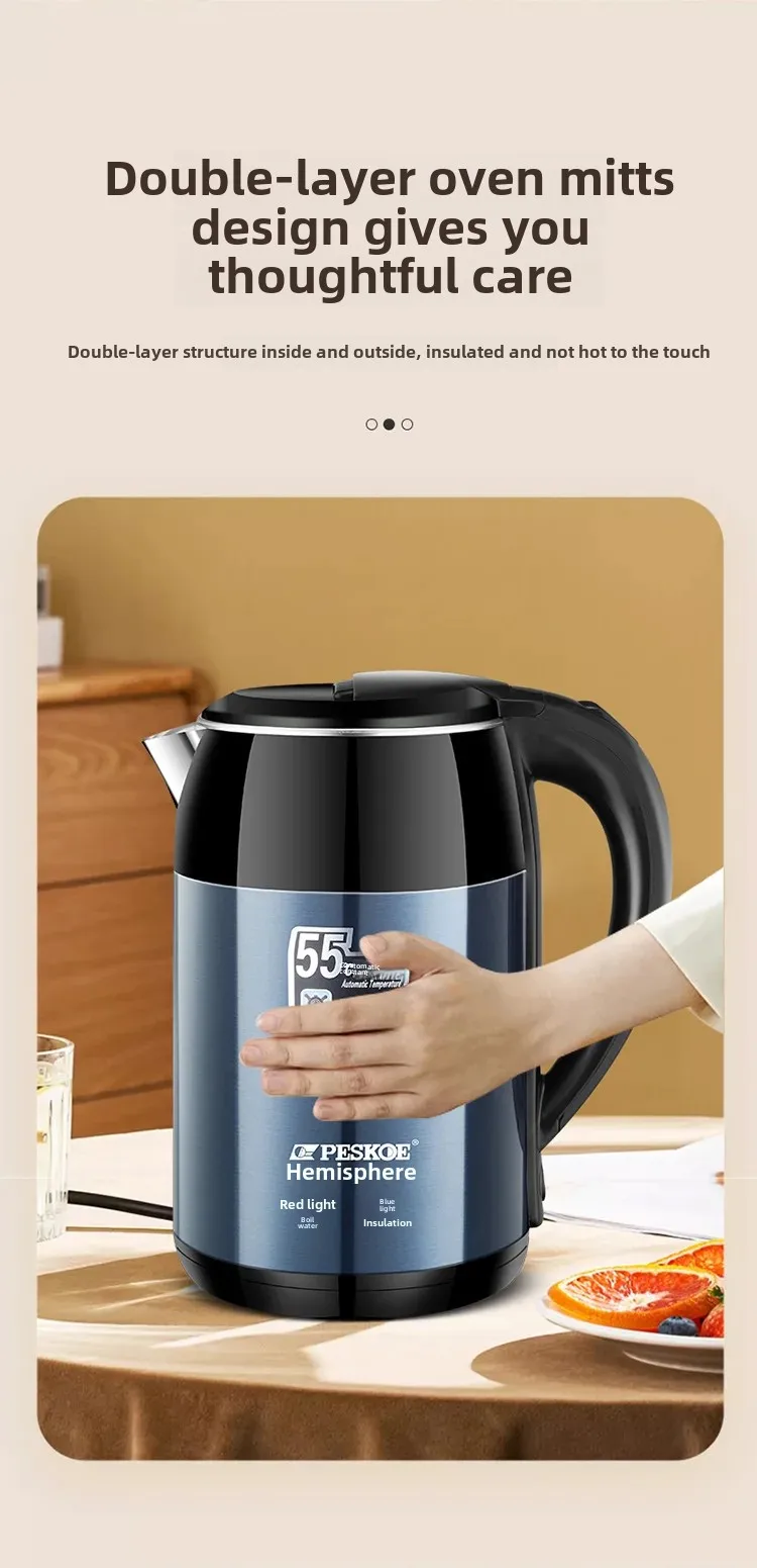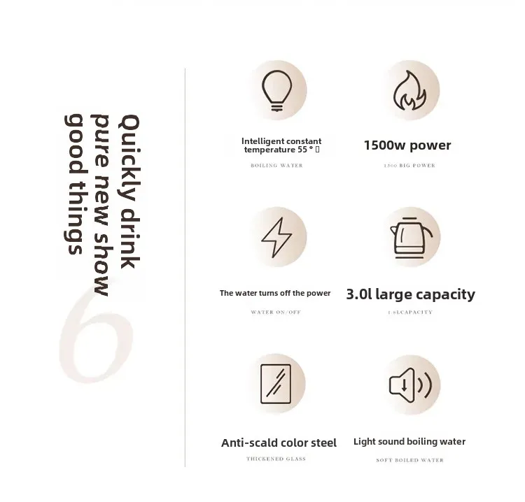 Designed for quick response order fulfilment and high-demand environments, this electric kettle heats water rapidly while ensuring peace of mind through its automatic shutdown function, preventing overheating and dry boiling. The unique half-sphere body design not only adds a contemporary look to your kitchen but also promotes efficient heat circulation for faster boiling times.