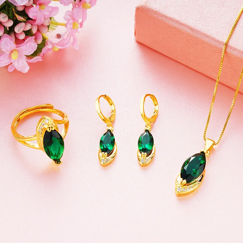 Luxury Jewelry Set Gold 24K – Gemstone Necklace & Women’s Ring