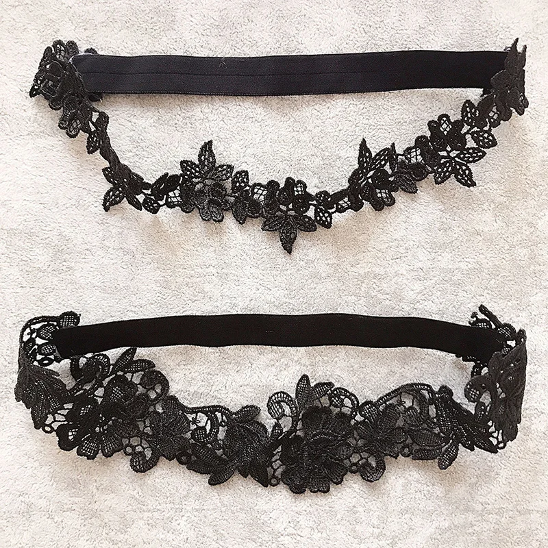Wedding Garter Set Lace Embroidery Floral Garters – Off White and Black