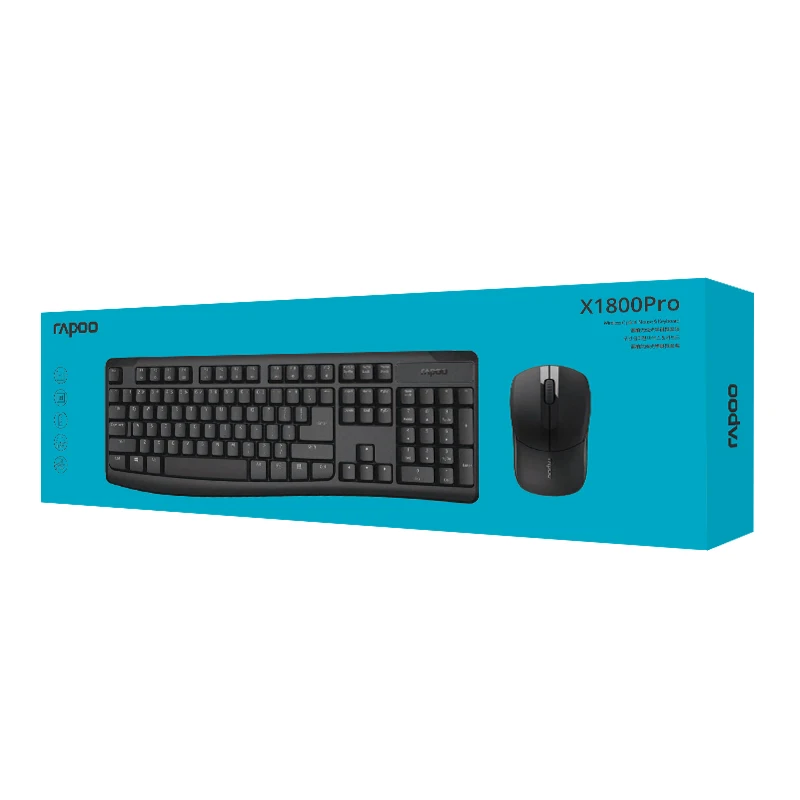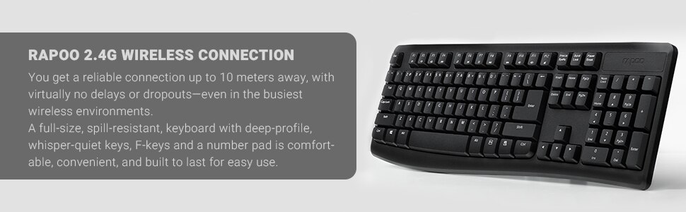Rapoo X1800PRO Wireless Keyboard and Mouse Combo, Full-Size Keyboard with Number Pad and Mouse Included, 2.4GHz Dropout-Free Connection, Long Battery Life