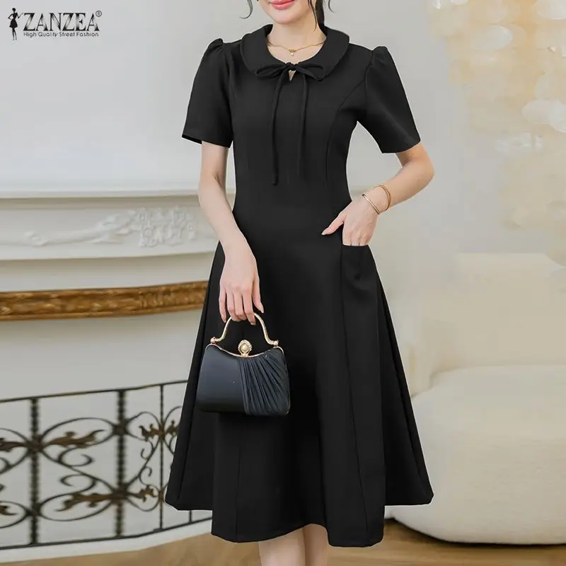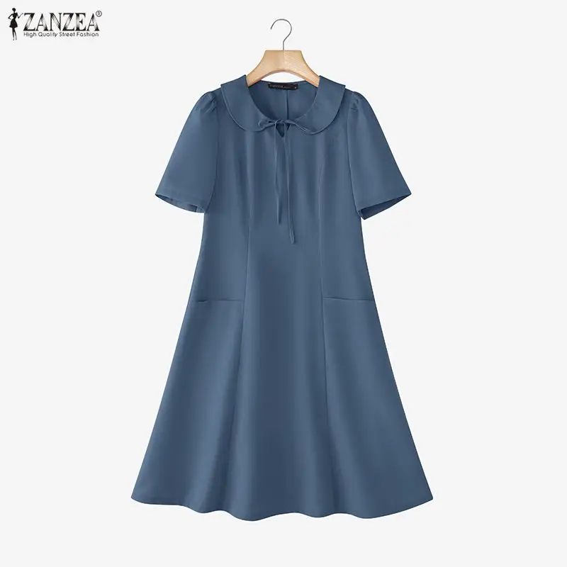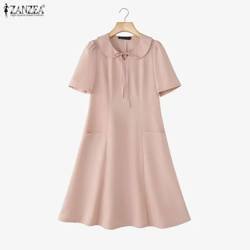 Shop the ZANZEA Elegant Women OL Work Dresses collection. A-line summer sundresses featuring short sleeves and solid colors, ideal for work and parties in Australia and New Zealand.